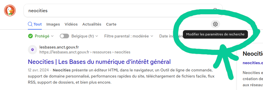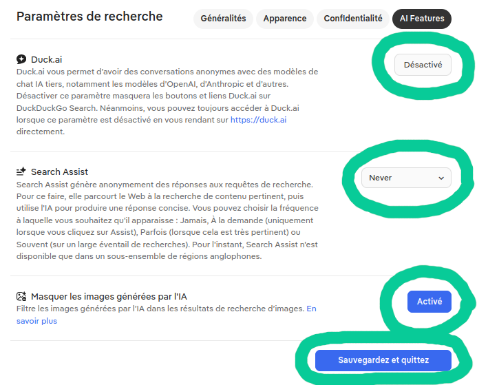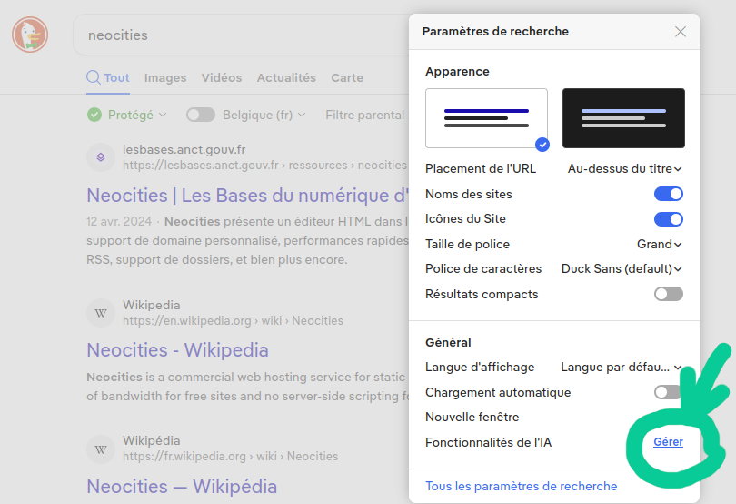 Désactiver l'IA dans les résultats de recherche internet sur Duckduckgo